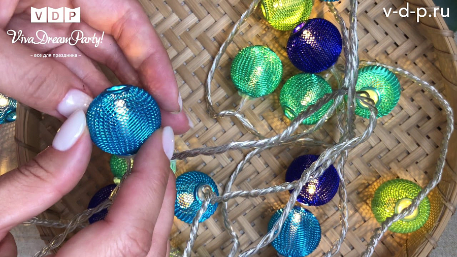 Гирлянда "Шары" син+фиол+салат+зел 3 м х 3 см х 20 ламп от сети Гирлянда "Шары" син+фиол+салат+зел 3 м х 3 см х 20 ламп от сети