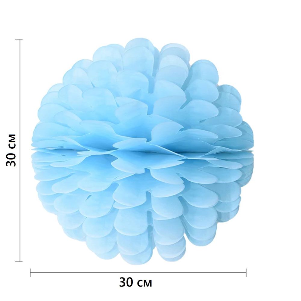 Бумажное украшение Цветочный шар-соты 30 см, голубой