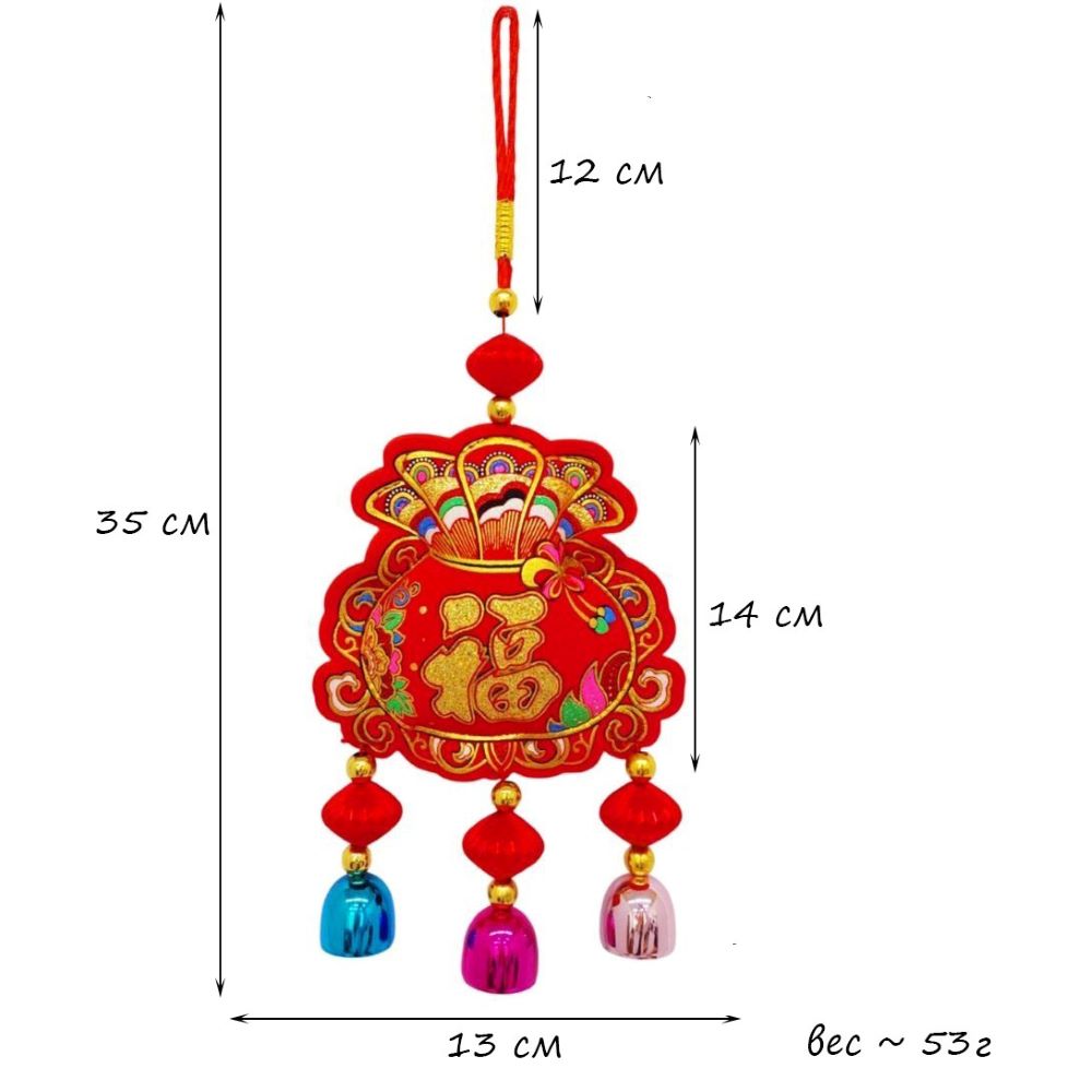 Китайская подвеска с колокольчиками 13х35см, Денежный мешок