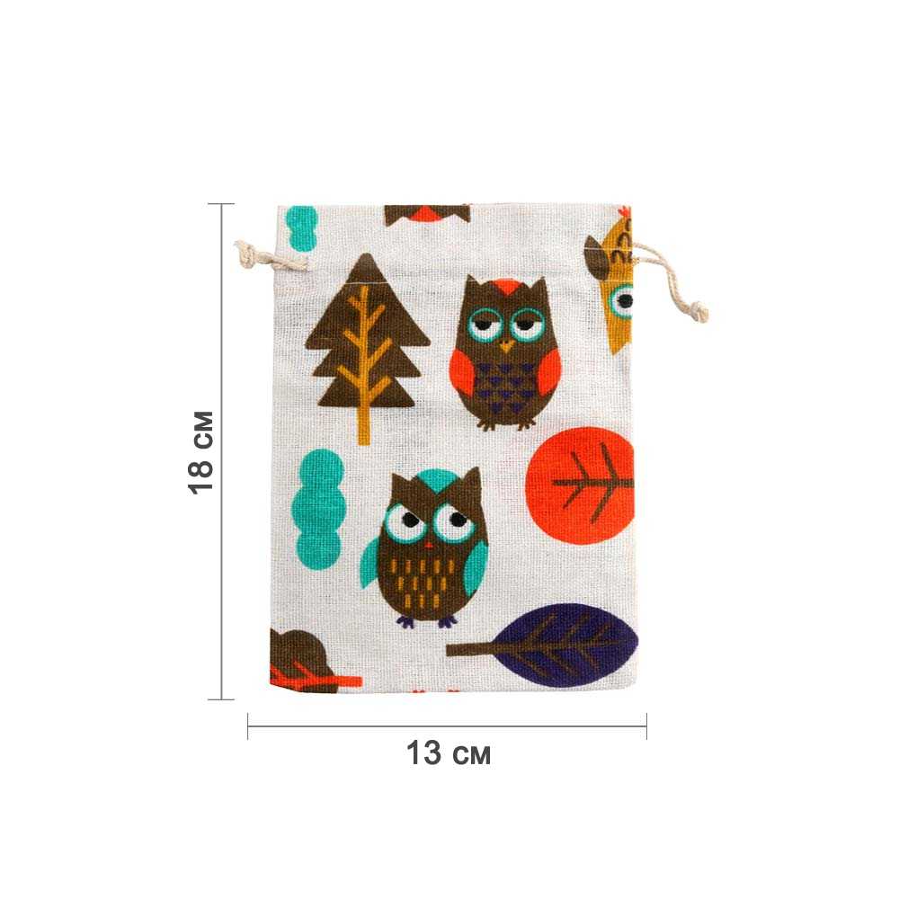 Мешочек из искусственного льна с принтом 13х18 см, №4
