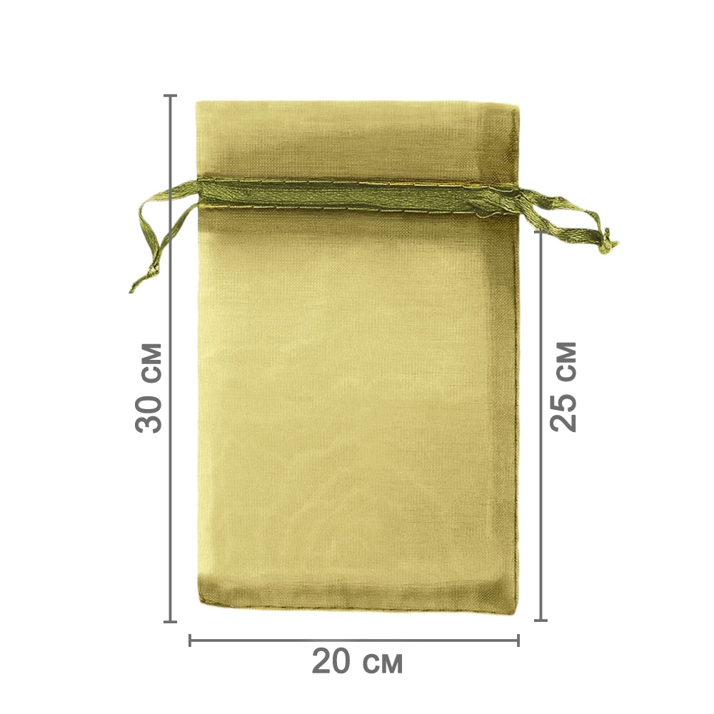 Мешочек из органзы 20 х 30 см — стильный аксессуар для упаковки средних и крупных предметов. Полупрозрачная ткань подчёркивает содержимое и придаёт аккуратный вид.