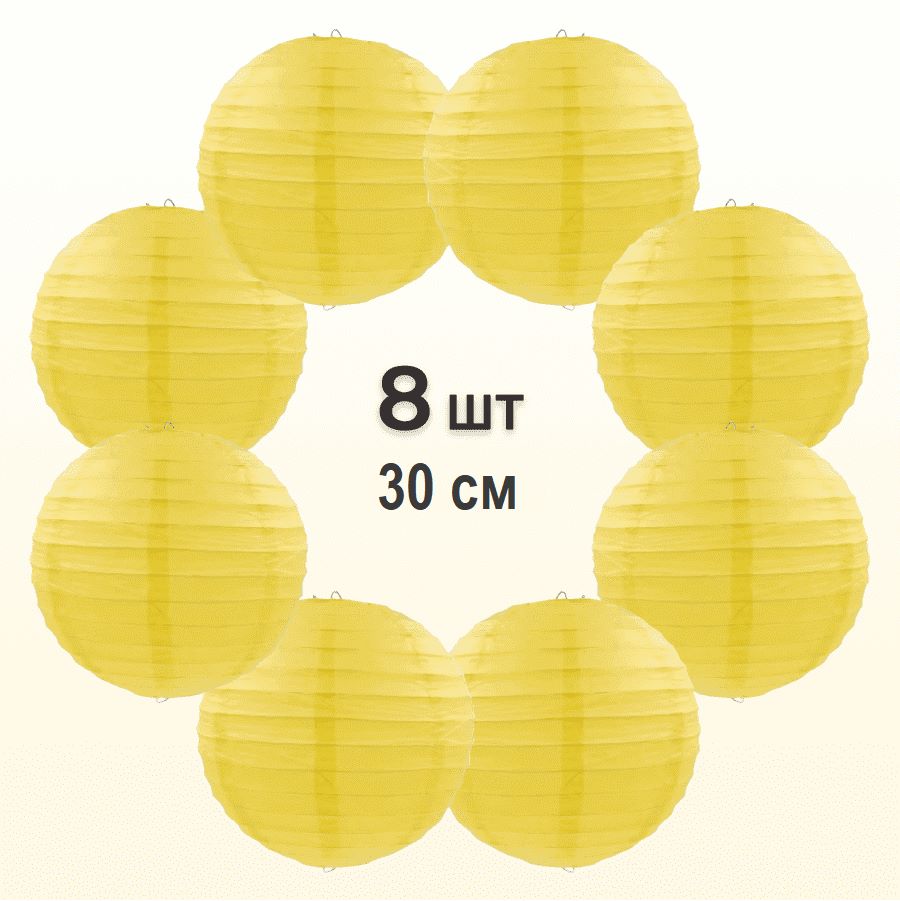 Комплект подвесные фонарики 30 см х 8 шт, желтый