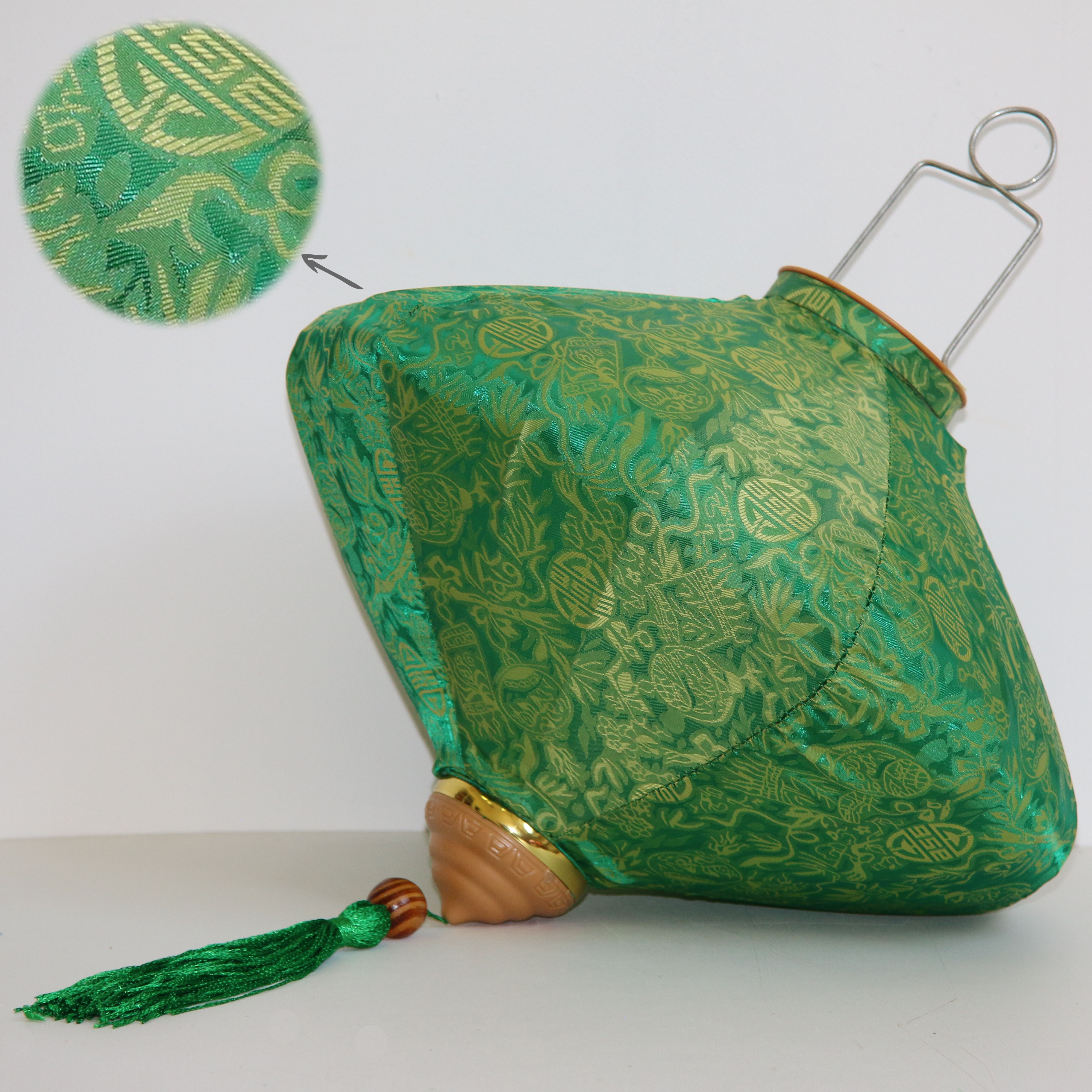 Это традиционные подвесные фонарики ручной работы, изготовленные из шелкового материала с элегантным цветочным узором, которые делают его изысканным и красивым.