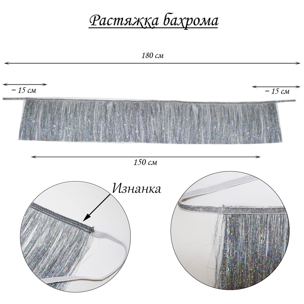 Растяжка бахрома 20см х 1,8м, голография серебро
