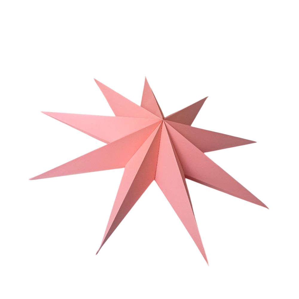 Объёмная девятиконечная звезда 60 см — декоративный элемент для интерьера и праздничного оформления. Лёгкая интерьерная звезда из картона хорошо держит форму и создаёт выразительный объём. Поставляется в сложенном виде, в комплекте шнур для фиксации объёма и подвеса.